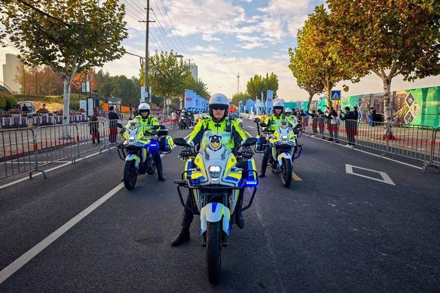 起跑前,普陀公安分局铁骑队伍首发登场,6辆车身印有“申城铁骑”字样的警用摩托车在起跑发令前,沿赛道开展全线巡检,既是对赛道安全状况的最后确认,更为后续比赛队伍开辟安全通道。比赛期间,铁骑民警在主要赛道沿线及重点路口定点值守,充分发挥摩托车灵活机动的优势,随时应对突发情况。由特警支队民警组成的自行车骑行小队,分段伴随比赛队伍全程护送,与地面警力形成立体化安保体系,确保每名参赛选手都在安全守护范围内。
