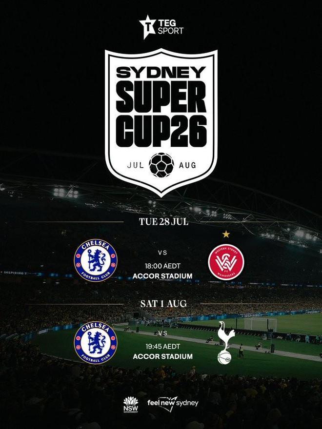 根据公告,明年夏天,切尔西和热刺将前往澳大利亚参加悉尼超级杯,参赛球队共有三支:切尔西、热刺和悉尼和西悉尼流浪者。具体赛程(以下均为北京时间):7月28日15:00 切尔西vs西悉尼流浪者7月29日16:45 热刺vs悉尼8月1日16:45 切尔西vs热刺【上咪咕独家看英超】