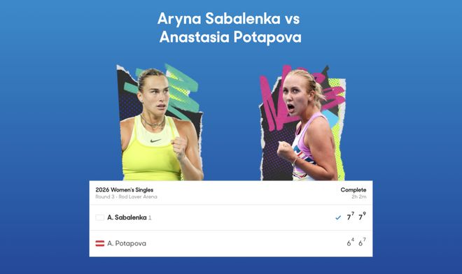 澳网女单第三轮,头号种子萨巴伦卡遭遇了一场意料之外的鏖战。面对世界排名第55位的波塔波娃,萨巴伦卡两度通过抢七锁定胜局,以7-6(4)、7-6(7) 艰难晋级16强。
