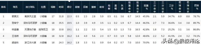 同曦新签外援汉兹个人能力突出,场均可以交出25.3分5.3篮板7.8助攻,多项数据位居全队第一,郭昊文以场均22.3分位居本土得分王第一,马内克,赵柏清同样也有得分上双的表现。